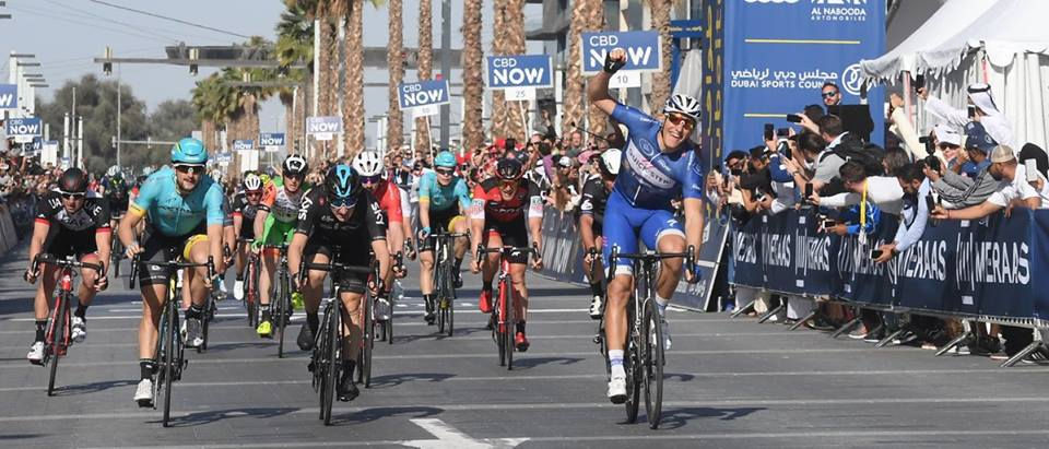 Marcel Kittel foi o grande vencedor da 5ª e última etapa do Dubai Tour, assegurando, desta maneira, o triunfo na classificação geral da prova. No sprint final, o ciclista da QuickStep bateu os italianos Elia Viviani e Ricardo Minali, para assegurar o terceiro triunfo na prova. Depois de dois dias em que o vento se fez sentir nos Emirados Árabes Unidos, tudo calma para a última etapa do Dubai Tour. Os primeiros quilómetros foram muito rápidos, com muitos ciclistas a tentarem entrar na fuga do dia, que só se ficou feita com mais de 25 quilómetros disputados. Dimitry Gruzdev e Matteo Bono foram os primeiros nomes a saltar do pelotão, sendo que Ivan Cortina e Floris Gerts. O pelotão nunca deu mais de 1 minuto e meio à fuga uma vez que a Bardiani comandava o grande grupo. A 40 quilómetros da chegada, a QuickStep, Trek-Segafredo e LottoNL-Jumbo apareceram pela primeira vez na frente do pelotão e começaram a reduzir mais a diferença para a frente da corrida. Este cenário manteve-se até aos 10 quilómetros finais, altura em que a fuga foi alcançada. Aí, começaram a surgir equipas que ainda não tinham aparecido na frente. Falamos da Dimension Data, Team Sky, Wilier Triestina e Bahrain-Merida. A confusão no pelotão era cada vez maior, até surgirem a QuickStep e a LottoNL a assumirem o controlo do grupo. Foi a Dimension Data a sair na frente à entrada do quilómetro final, no entanto uma curva a 450 metros do final, desorganizou o comboio de Mark Cavendish. Mark Renshaw continuou o seu trabalho, apesar de não ter Cavendish na roda. Na altura do sprint, Marcel Kittel arrancou, com Cavendish na sua roda, mas o britânico nunca conseguiu sair de trás do germânico e quando o tentou fazer ainda perdeu mais posições, terminando fora do pódio da etapa, onde acabaram Elia Viviani e Ricardo Minali, uma das belas surpresas da competição. Com mais um triunfo, Marcel Kittel assegurou o triunfo no Dubai Tour, com Dylan Groenewegen a terminar em 2º e John Degenkolb em 3º. O ciclista da QuickStep venceu, também, a classificação por pontos, sendo que o melhor jovem foi Dylan Groenewegen, o vencedor dos sprints intermédios foi Nicola Boem. Por fim, coletivamente, triunfou a UAE Abu Dhabi. O português Nelson Oliveira veio para o Dubai para ganhar quilómetros nas pernas, tendo cumprido esse objectivo e terminado a prova no 37º lugar. Top 10 da etapa: 1. Marcel Kittel (Quick-Step Floors) 02h 34' 12'' 2. Elia Viviani (Team Sky) + 00' 00'' 3. Riccardo Minali (Astana Pro Team) + 00' 00'' 4. Mark Cavendish (Dimension Data) + 00' 00'' 5. John Degenkolb (Trek Segafredo) + 00' 00'' 6. Sacha Modolo (Team UAE Abu Dhabi) + 00' 00'' 7. Jean-Pierre Drucker (BMC Racing Team) + 00' 00'' 8. Paolo Simion (Bardiani CSF) + 00' 00'' 9. Sonny Colbrelli (Bahrain-Merida) + 00' 00'' 10. Dylan Groenewegen (Team LottoNl-Jumbo) + 00' 00'' Top 10 da classificação geral: 1. Marcel Kittel (Quick-Step Floors) 15h 08' 56'' 2. Dylan Groenewegen (Team LottoNl-Jumbo) + 00' 18'' 3. John Degenkolb (Trek-Segafredo) + 00' 29'' 4. Jean-Pierre Drucker (BMC Racing Team) + 00' 24'' 5. Elia Viviani (Team Sky) + 00' 24'' 6. Thomas Stewart (ONE Pro Cycling) + 00' 24'' 7. Riccardo Minali (Astana Pro Team) + 00' 26'' 8. Mark Cavendish (Dimension Data) + 00' 26'' 9. Reinardt Janse Van Rensburg (Dimension Data) + 00' 27'' 10. Alex Dowsett (Movistar Team) + 00' 27''